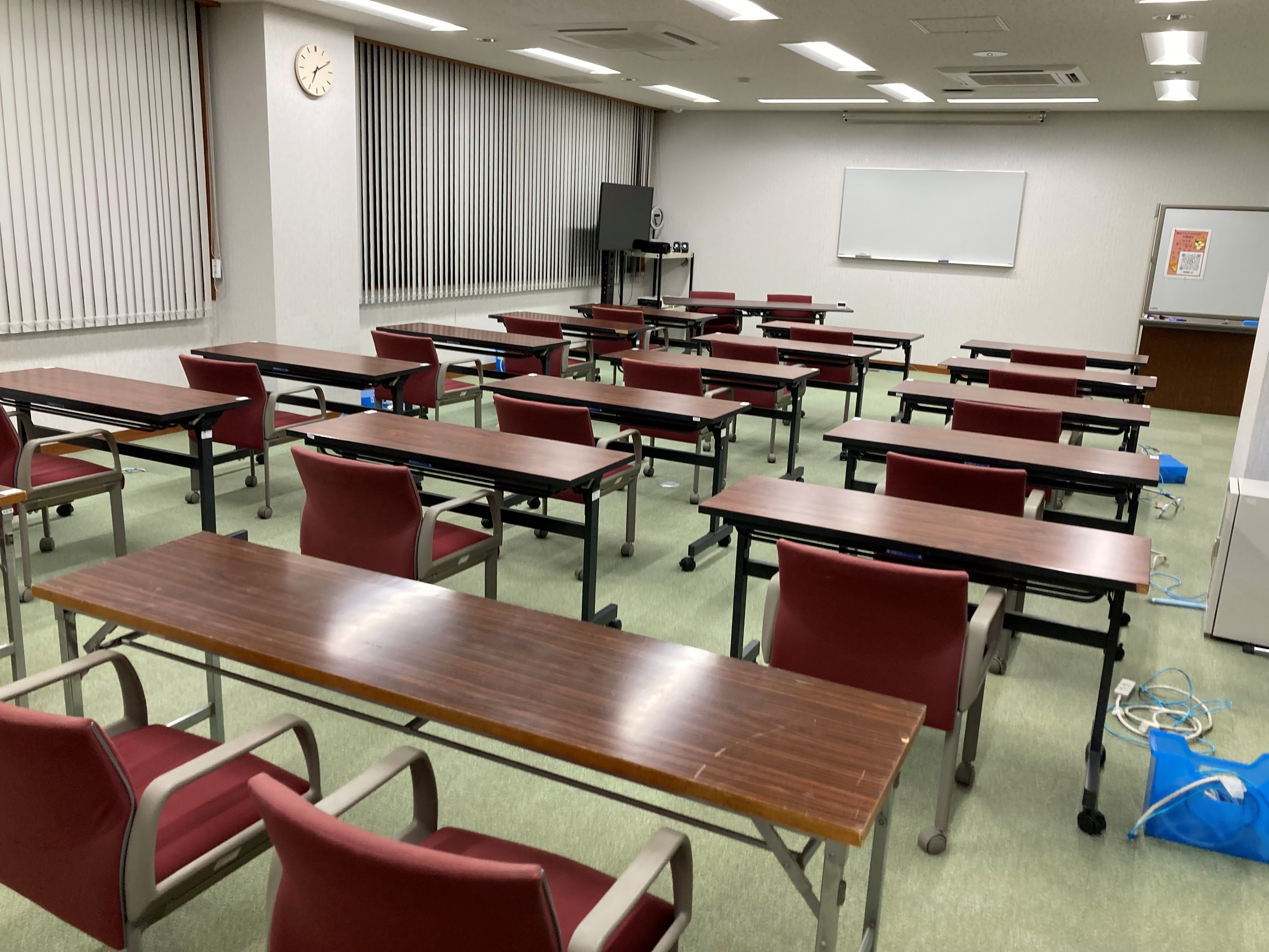 | 多目的会議室 | 最大36名程度収容(86.28㎡) | 円卓式(学校方式) | 1,500円 | 確 認 | ||